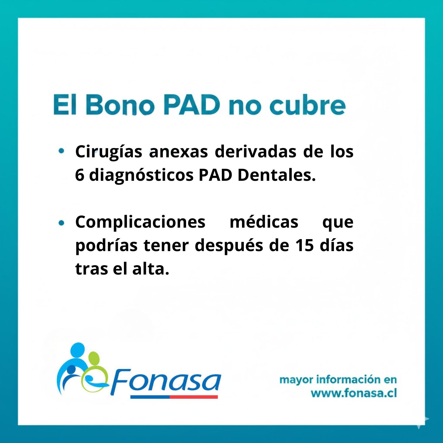 El Bono PAD Dental de Fonasa es un beneficio para afiliados (tramos B, C, D) y sus cargas entre 12 y 34 años que permite acceder a paquetes de tratamientos dentales (como obturaciones, endodoncias) con un precio fijo y conocido, agrupando diagnóstico, tratamiento y controles en un solo pago, lo que lo hace más accesible y transparente, pagando solo el copago en clínicas y centros médicos en convenio. Para usarlo, se compra el bono en la web de Fonasa o sucursales, se obtiene el programa de atención en el prestador y se entrega todo en la clínica para realizarse el tratamiento.